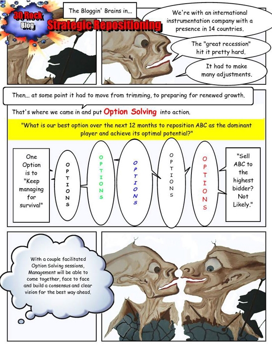 Once in place, he was able to identify the two “bookends” (see Smart Decisions book) that would form choice boundaries for his question. These were: at one end, “Keep managing for survival,” and at the other end, “Sell ABC to the highest bidder.” Since both were unacceptable options at that moment in time, for a whole host of reasons, they served to spark this executive’s intuitive intelligence into a strongly creative but strategic mode.